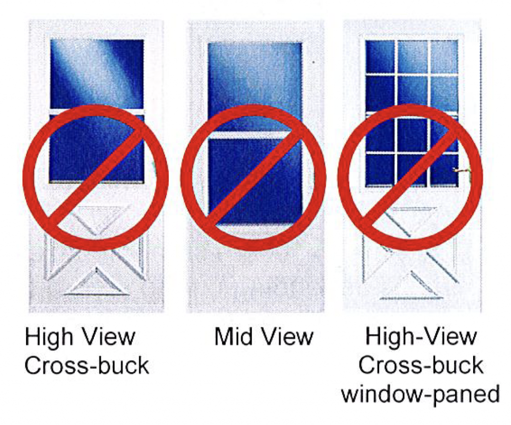 • Front: Must be FULL or THREE-QUARTERS VIEW style and match color scheme of unit. No high-view, mid-view, or cross-buck styles.